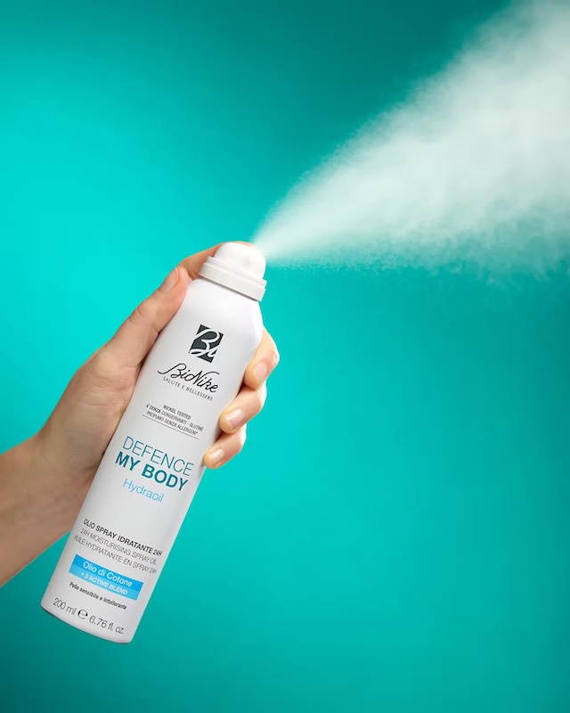 BioNike Body niisutav spreiõli on üles ehitatud just selliselt. Puuvillaõli rahustab ja niisutab, samas kui magusa mandli õli pehmendab nahka. E-vitamiin toimib antioksüdandina, tugevdades naha kaitsevõimet ja vähendades kuivusest tingitud kahjustusi. Sheavõist saadud vedel komponent annab lisatoidet ilma rasvase kihita.